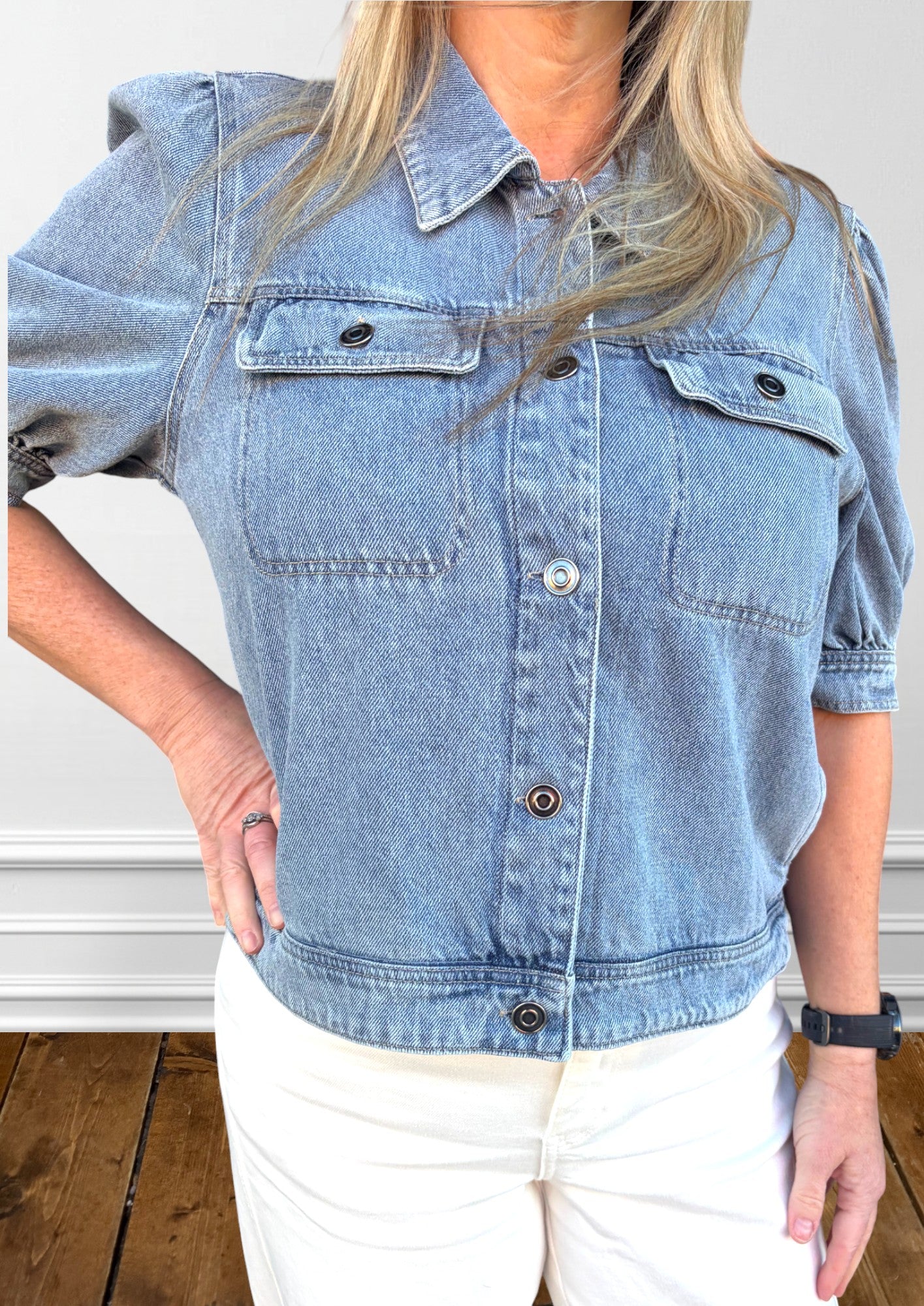 Say hello to your new go-to layer 💙 The ee:some Short Puff Sleeve Denim Jacket is the perfect mix of classic denim and boutique charm — thanks to those adorable puff sleeves that instantly elevate your look.