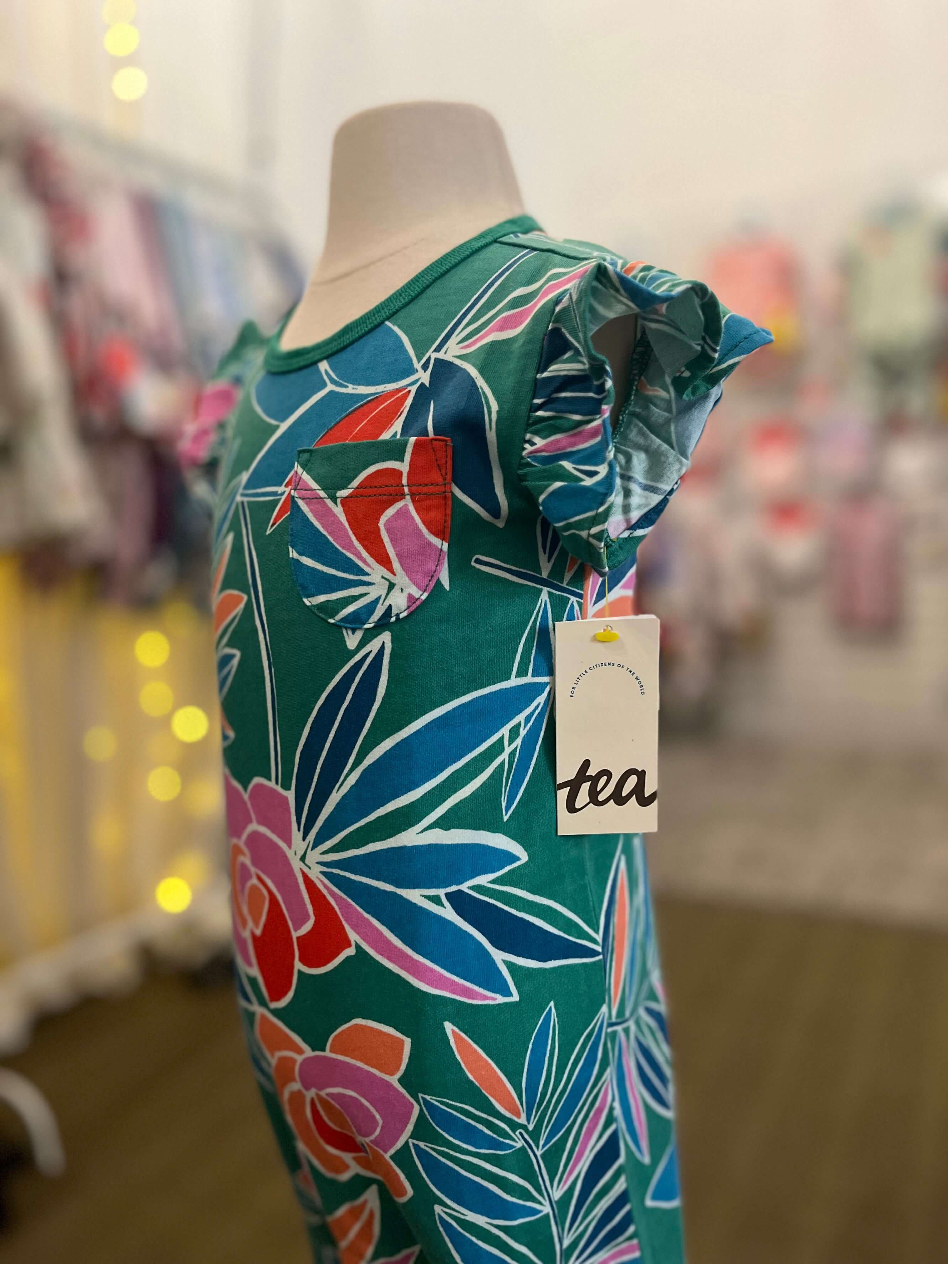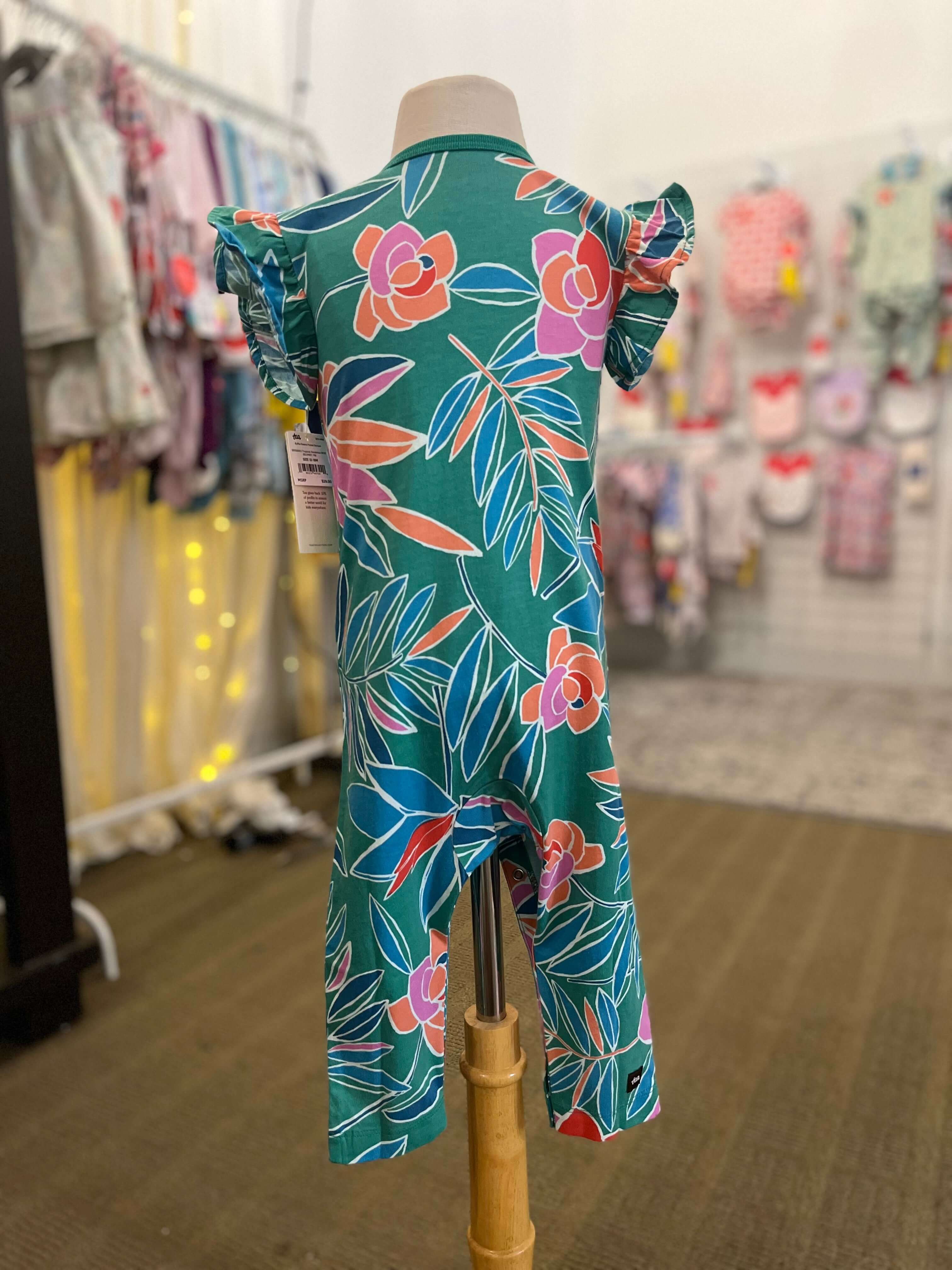 Tea Collection Tropical Ruffle Sleeve Pocket Romper