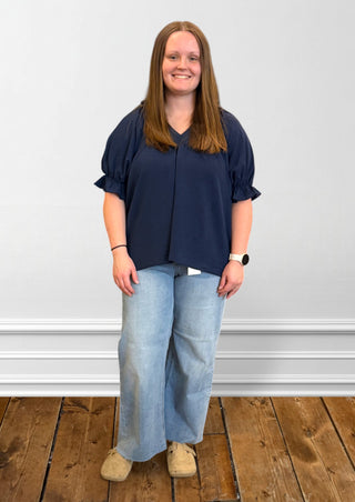 Mica Denim Capri Blue Super High Waist Wide Leg With Cuffed Hem Jeans - Plus Sizes