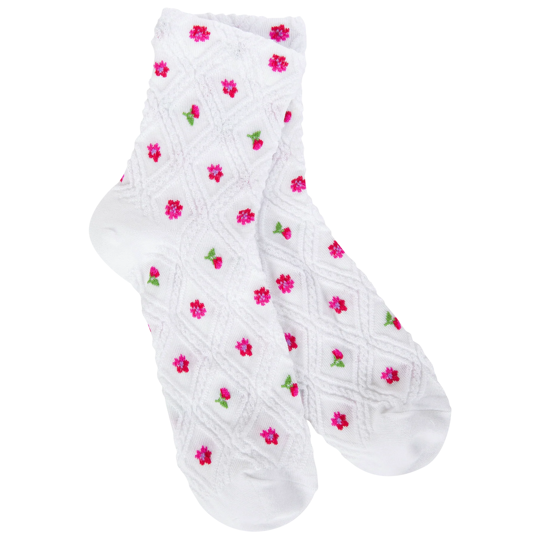 Designed with a crisp white base and delicate rose bud floral details, these socks bring a soft, feminine touch to your everyday essentials. Perfect for lounging at home, pairing with boots, or gifting someone a little cozy happiness.