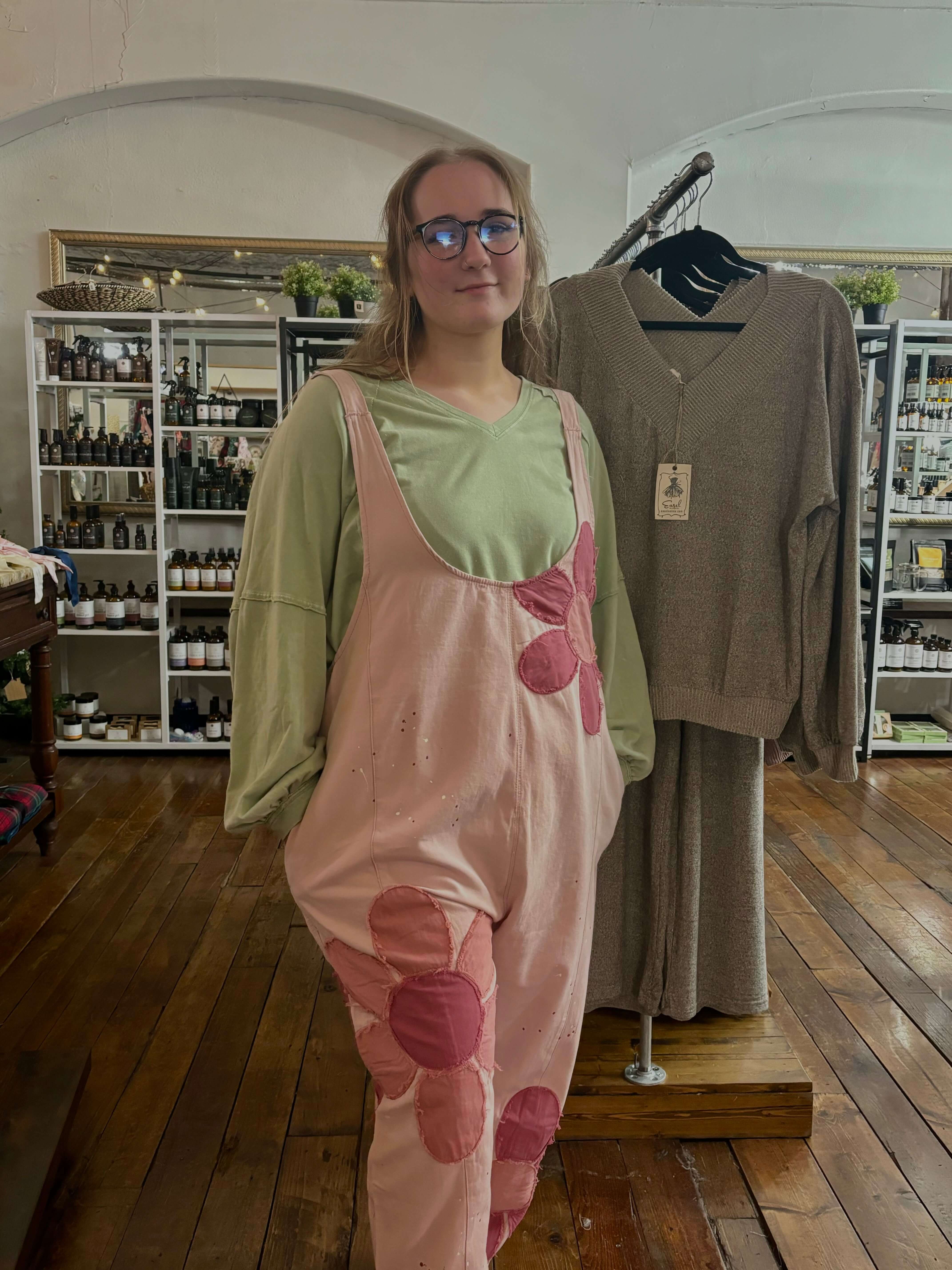 Oli & Hali Pink Washed Big Floral Overall