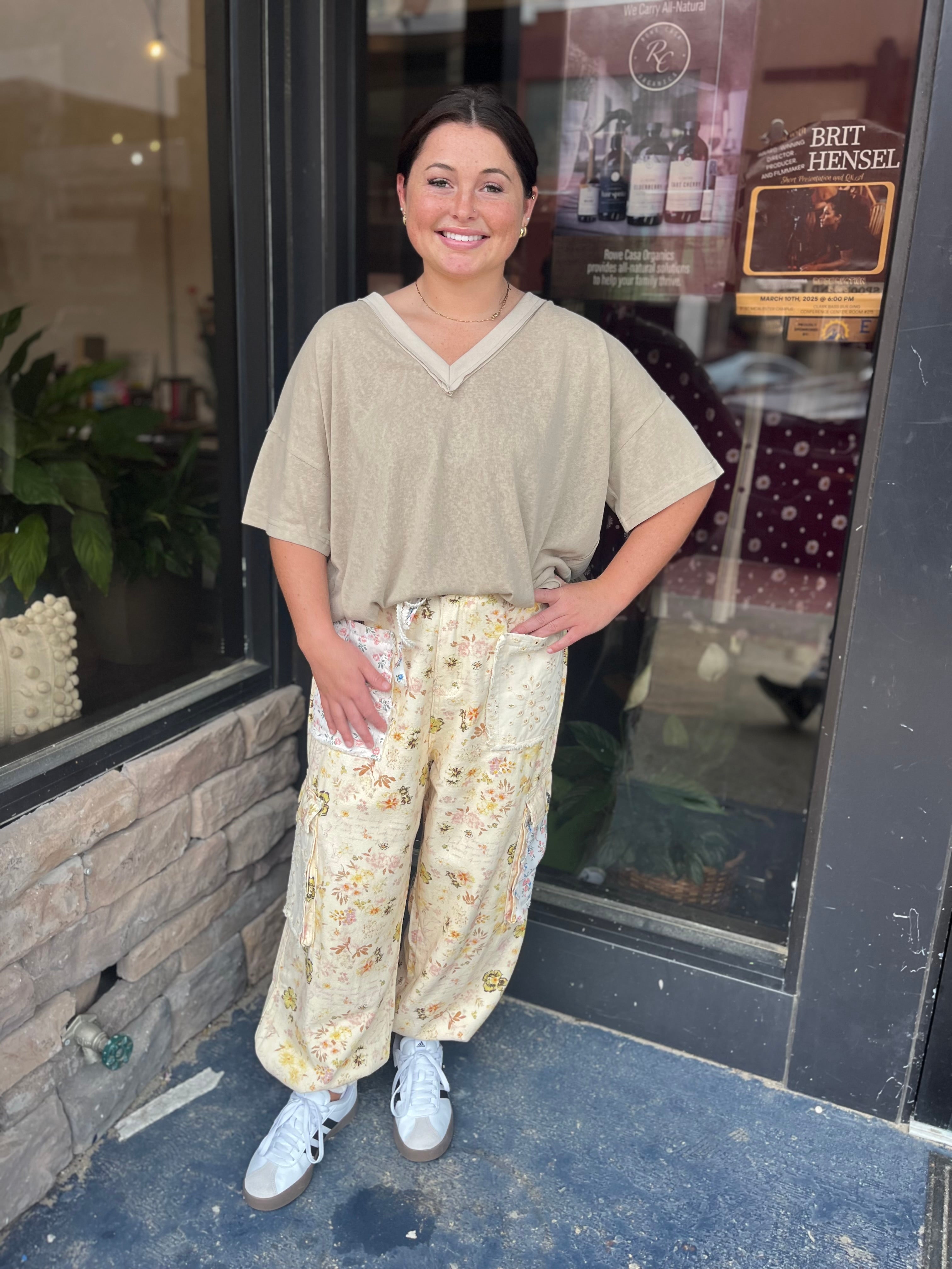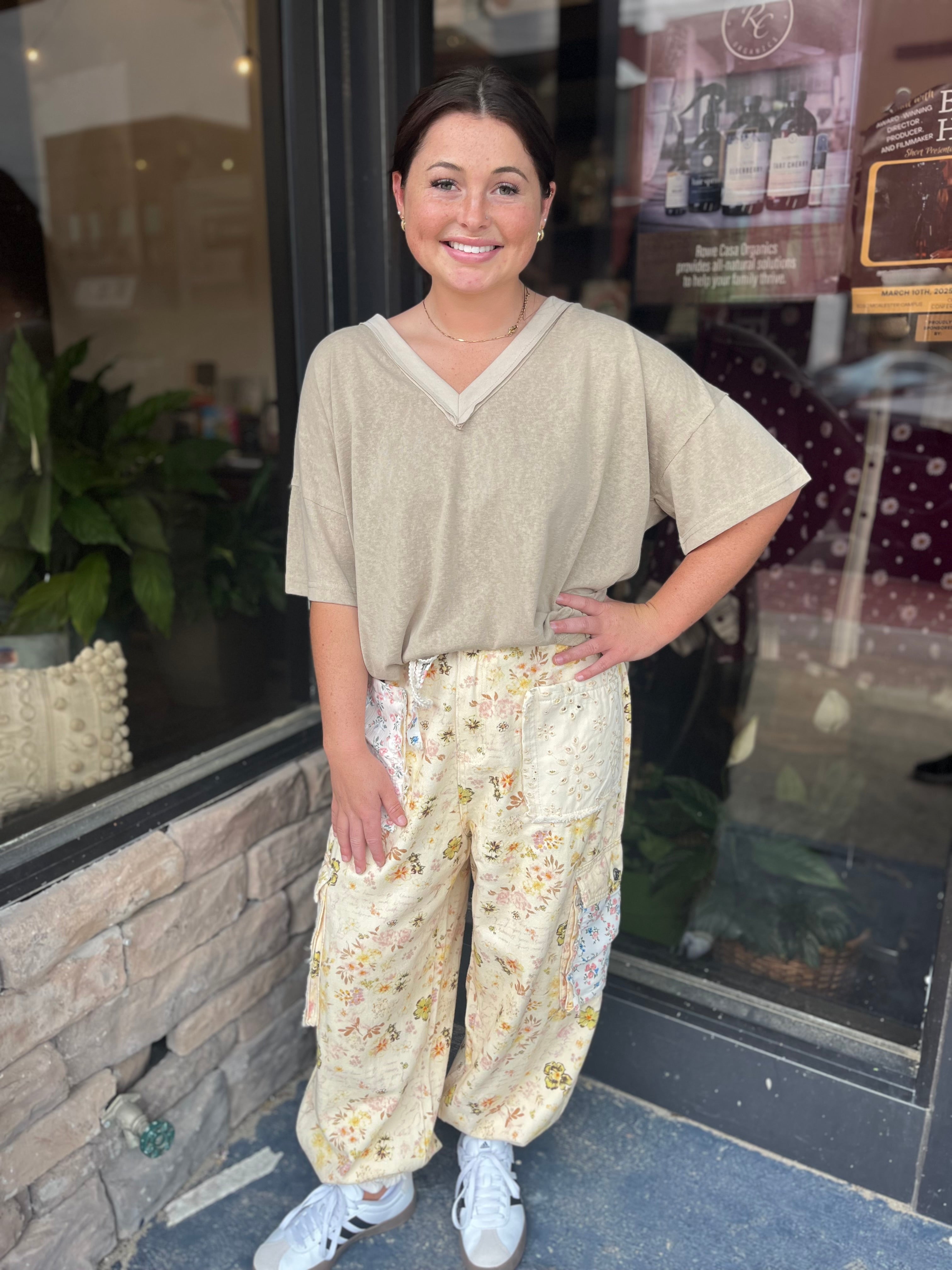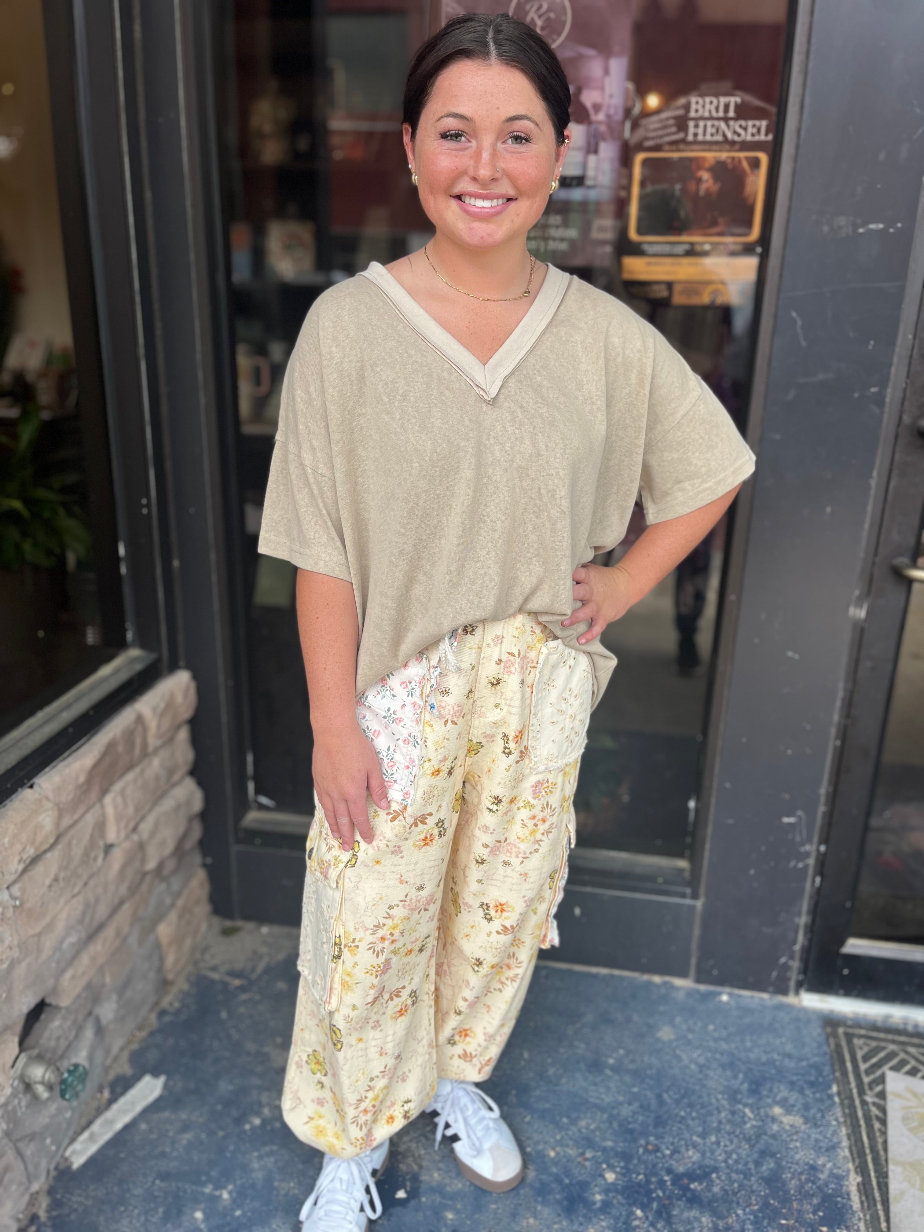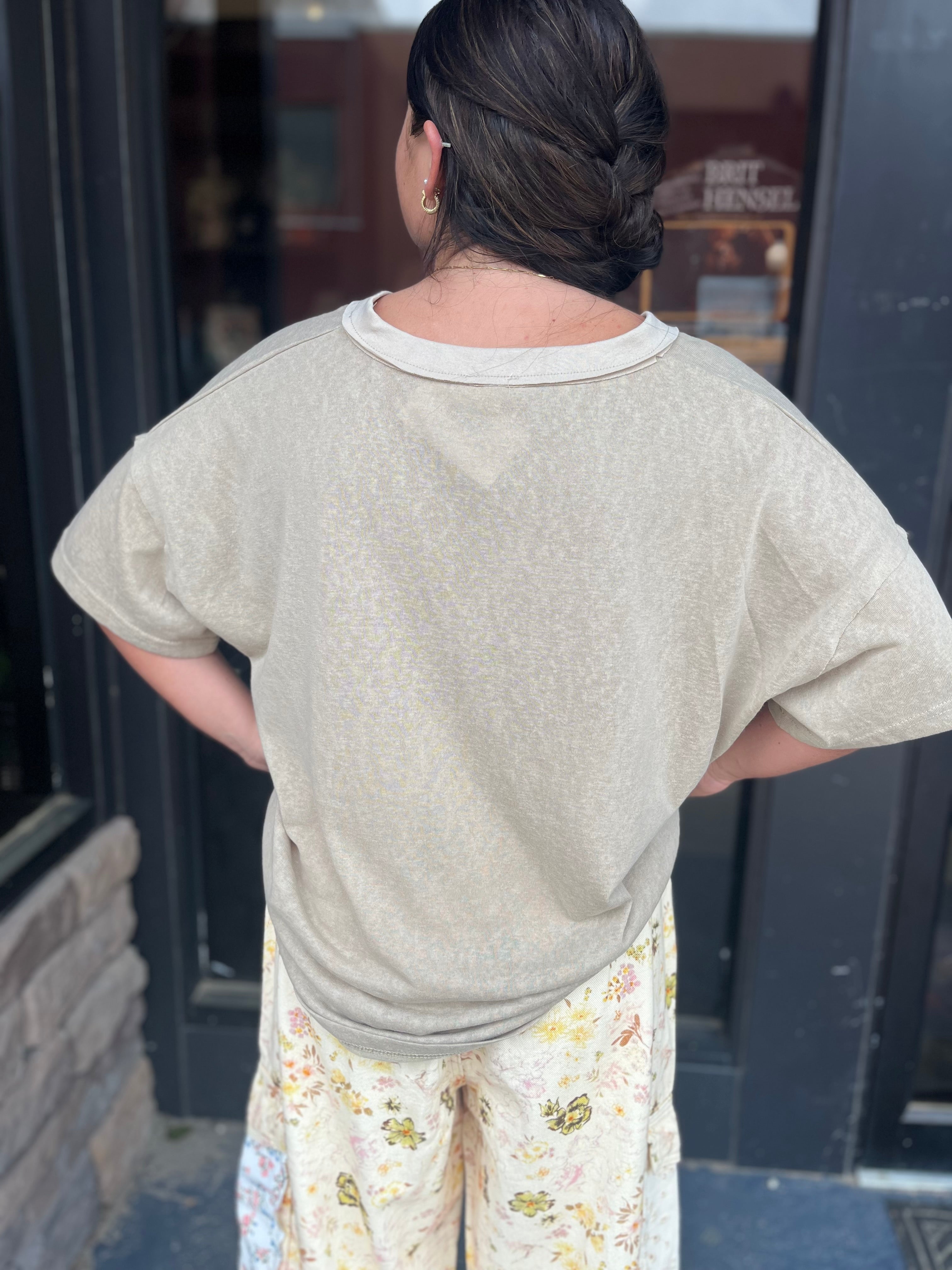 The POL Latte V-Neck Stone Washed Top is a timeless neutral with standout style—perfect for casual days with a polished finish.