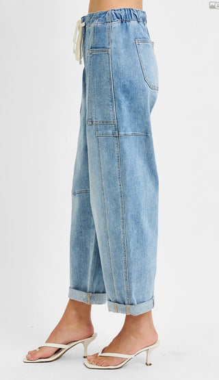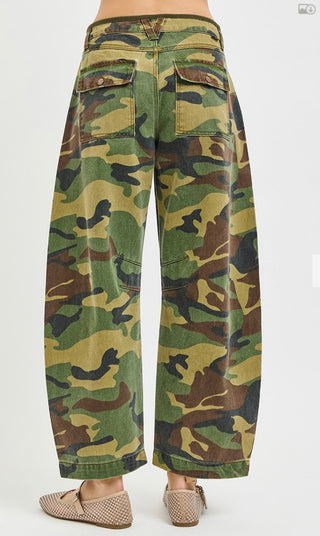 Risen Dark Slouchy Cropped Barrel Jeans in Floral Print - Regular Sizes