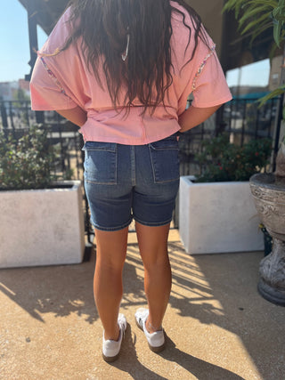 Judy Blue HW Bermudas with Back Flap Pockets - Regular Sizes