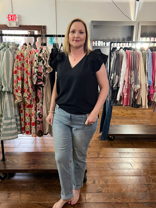 Ee:some Black Layered Flutter Sleeve V-Neck Top